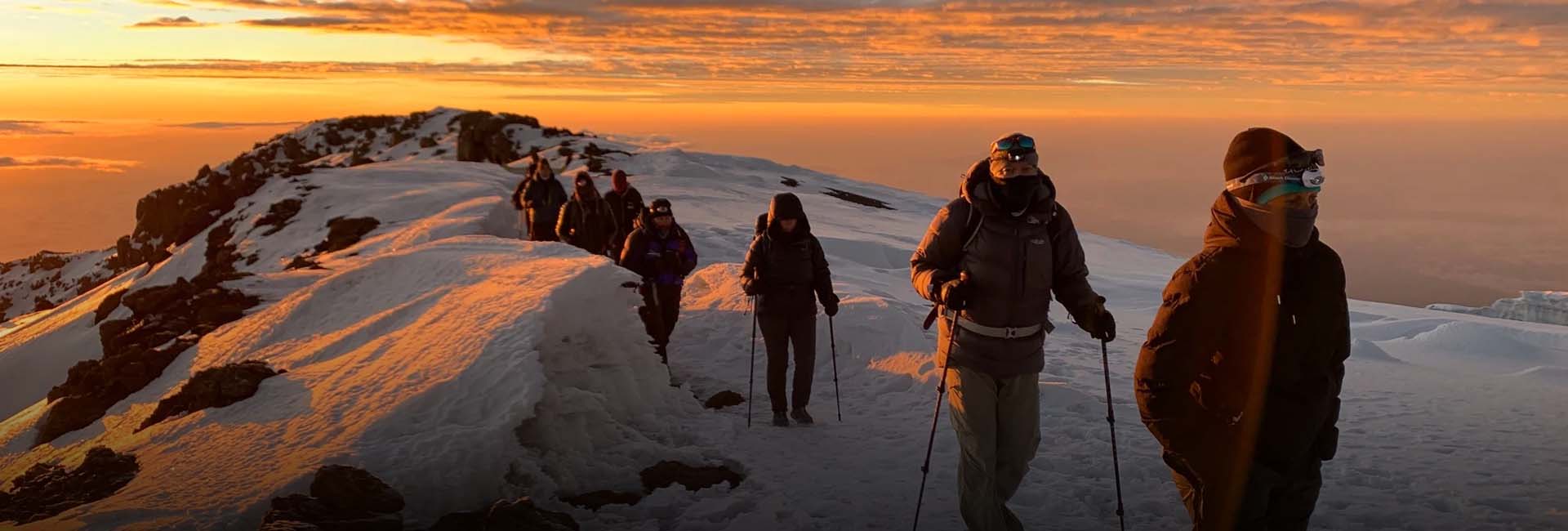 You will rise around 2330hrs and after some tea and biscuits you will shuffle off into the night. You will head in a northwesterly direction and ascend through heavy scree towards Stella Point on the crater rim. This 8-hour walk to Stella Point is for many climbers, mentally and physically, the most challenging on the route. At Stella point (5685m) you will stop for a short rest and will be rewarded with the most magnificent sunrise you are ever likely to see (weather permitting). From Stella Point you will normally encounter snow all the way on your2-hour ascent to Uhuru Peak (5896m). Despite the actual distance of the trek not being too far the progress is slow - there is less than half the oxygen than at sea level! Uhuru Peak provides a unique reward and usually a plethora of emotions. If your progress has been good you can watch the sunrise from the rooftop of Africa! Most people then start returning quite soon after sunrise as the return journey today is quite long. Take a brief respite at Barafu Camp before descending all the way down to Mweka Camp at 3100m. Overnight at Mweka Camp.